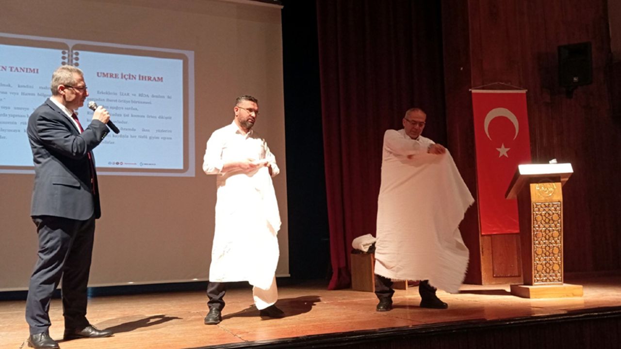 Kur’an-ı Kerim tilavetiyle başlayan kursta İl Müftü Yardımcısı Adem Aygül, Kabe maketinin yanında hacı adaylarına uygulamalı olarak hac ve umre ibadetinin yapılışını gösterdi.
