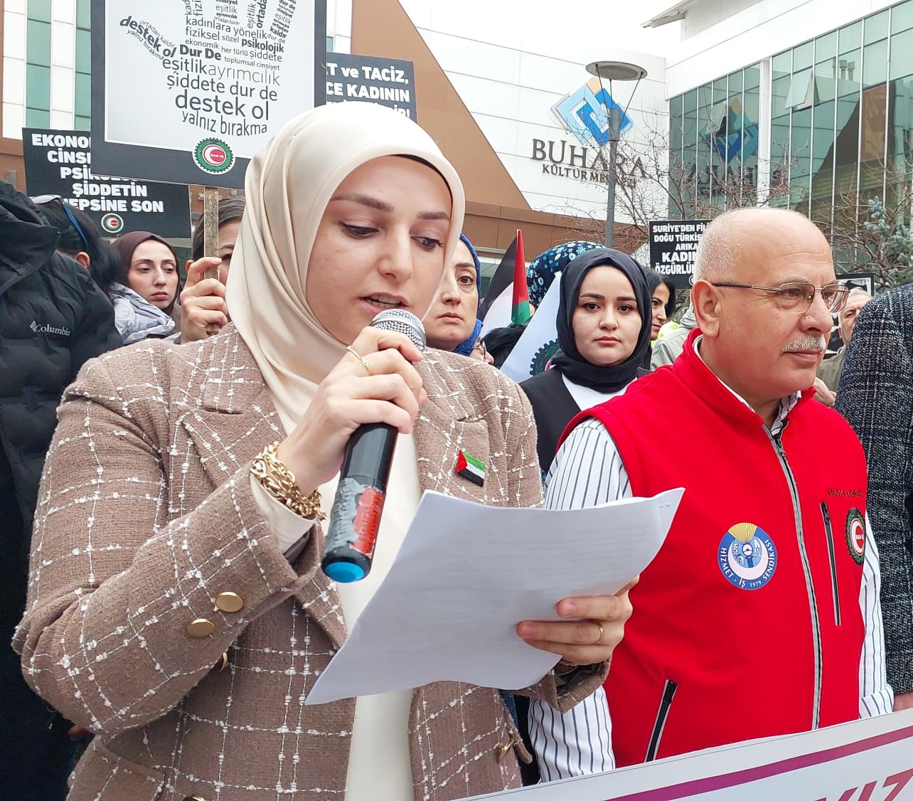 Buhara Kültür Merkezi önünde gerçekleşen basın açıklamasında konuşma yapan Hizmet İş Sendikası Kadın Komitesi Başkanı Şükriye Yılmaz Köse, nereden ve kimden gelirse gelsin şiddetin her türlüsüne karşı olduklarını söyledi.