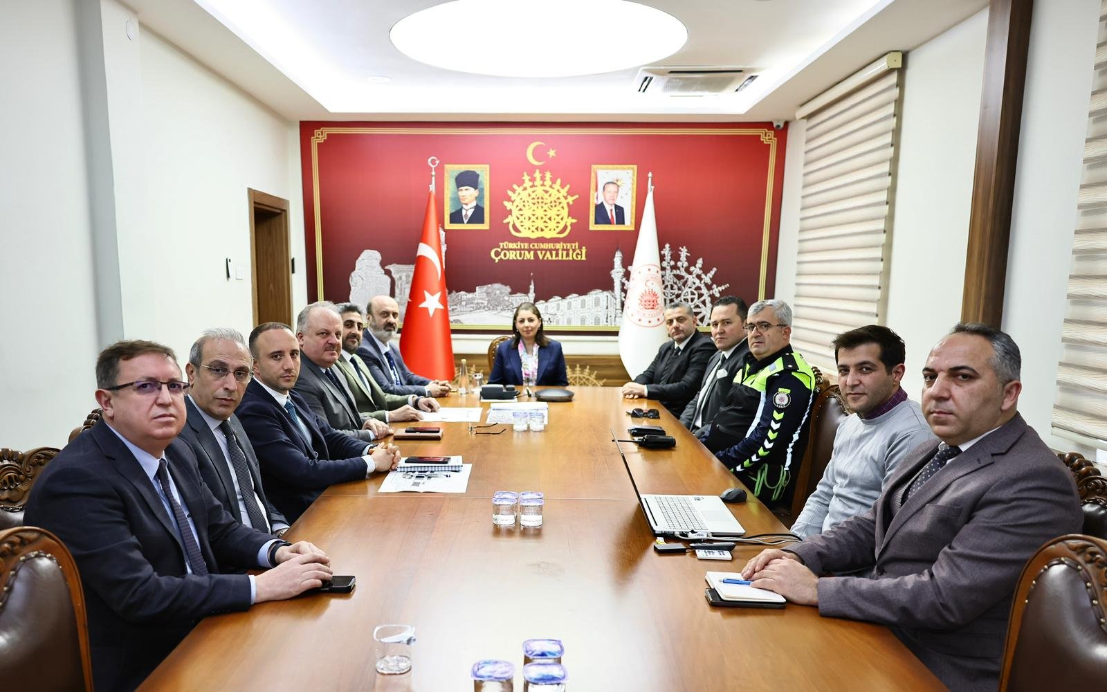 Vali Yardımcısı Yeliz Mercan başkanlığında gerçekleştirilen toplantıya Belediye Başkan yardımcısı Alper Zahir, İl Sağlık Müdürü Prof. Dr. Sinan Zehir, İl Özel İdare Genel Sekreteri Recep Çıplak, Emniyet Müdür Yardımcısı Mete Bayrak, Trafik Şube Müdürü Nuri Güneş, Kamu Hastaneleri Hizmetleri Başkanı İhsan Demirbaş, Destek Hizmetleri Başkanı Hasan Kasım, Hitit Üniversitesi Erol Olçok Eğitim ve Araştırma Hastanesi Başhekimi Doç. Dr. Muhammed GÖMEÇ, Belediye Fen İşleri Müdürü Yunus Emre Bölükbaş, Hastane destek ve kalite müdürü Kadir Kocatürk ve Hastane mimarı Eren Dağlı katıldı.