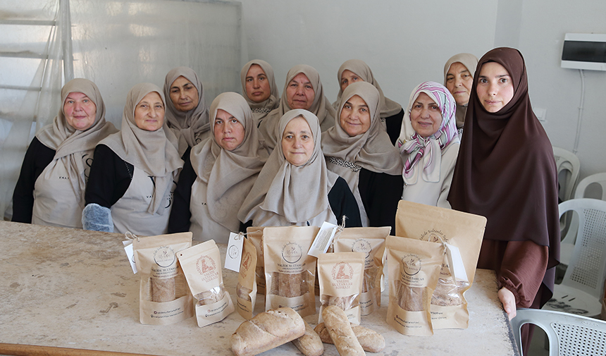 Köyde üretilen ata tohumu buğdayın taş değirmende un haline getirildiğini anlatan Topkara, "Özel kaya tuzu ve yerel pınar suyumuzu geleneksel yöntemlerle kullanarak unu hamura dönüştürüyoruz. Kooperatifimize üye hanımlar tarafından meşe odunu ateşinde pişirilen ekmekler, paketlenerek tüketiciye gönderiliyor." dedi.