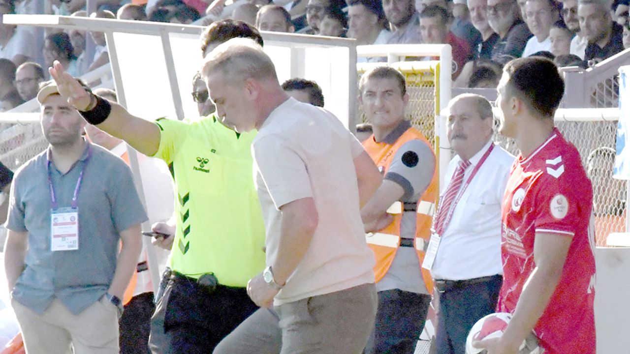 Maçın sonlarına doğru Teknik Direktör Tahsin Tam, taç atışı esnasında futbolcularını yönlendirmek hareketlendi. Keçiörengücü'nden Berkan Keskin takımının kazandığı taç atışını hızlı kullanmak istedi.