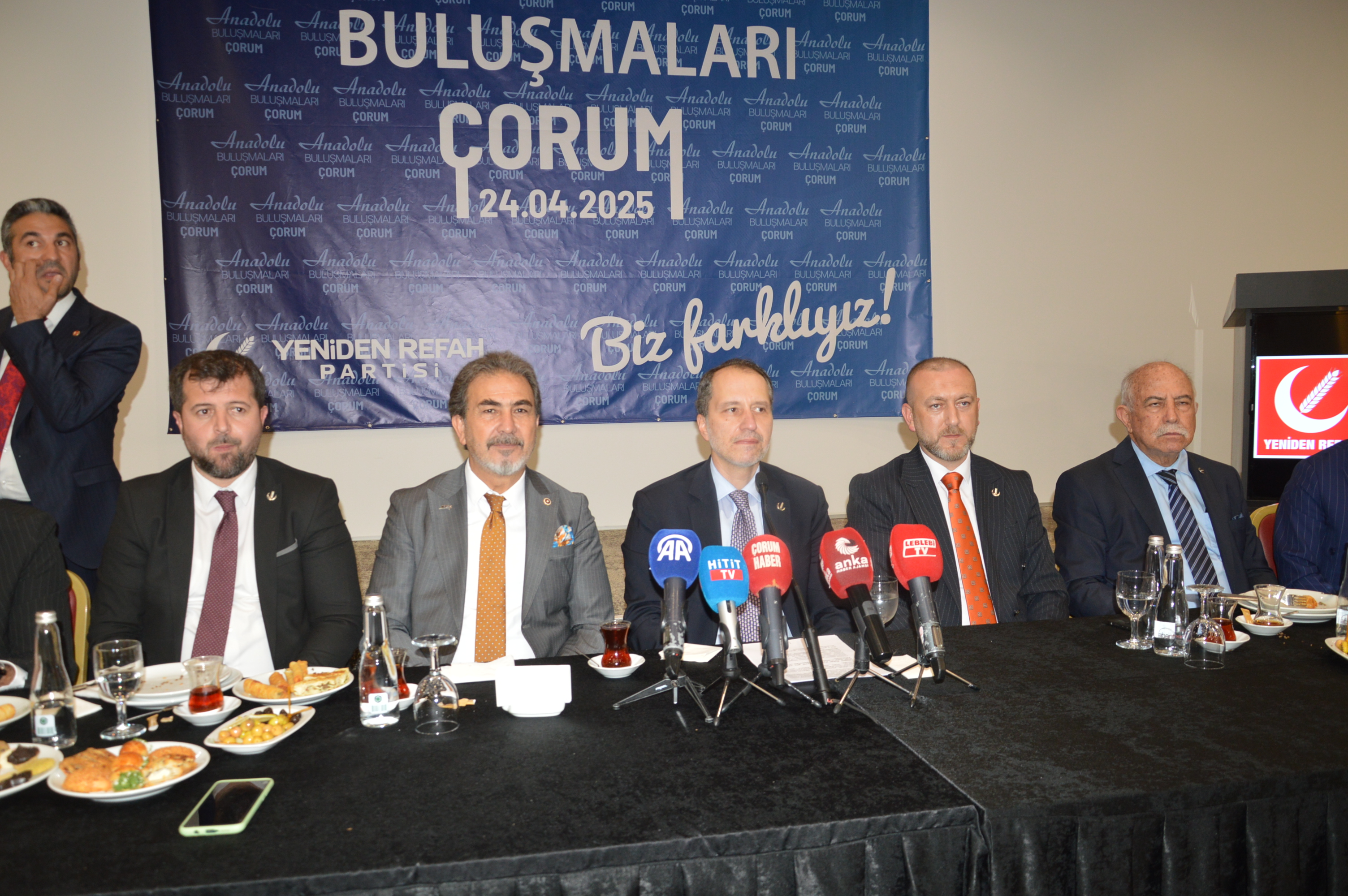 Anadolu Buluşmaları kapsamında Çorum’a gelen Yeniden Refah Partisi Genel Başkanı Fatih Erbakan, Anitta Otel’de partililerle birlikte basın açıklaması yaptı.
