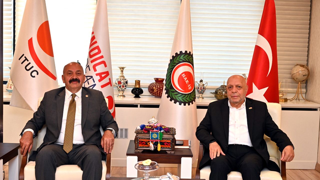 Ortaköy Belediye Başkanı Taner İsbir, Hak- İş Konfederasyonu Genel Başkanı Mahmut Arslan’ı makamında ziyaret etti.
