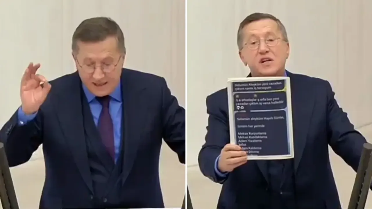 Türkkan, paylaşılan ilanlardan bazılarını kürsüden okuyarak, "İzmir'in her yerinde mekan kurşunlama, mekan kundaklama, adam yaralama, not bırakma hizmetlerimiz mevcuttur" ifadelerinin yer aldığını aktardı.
