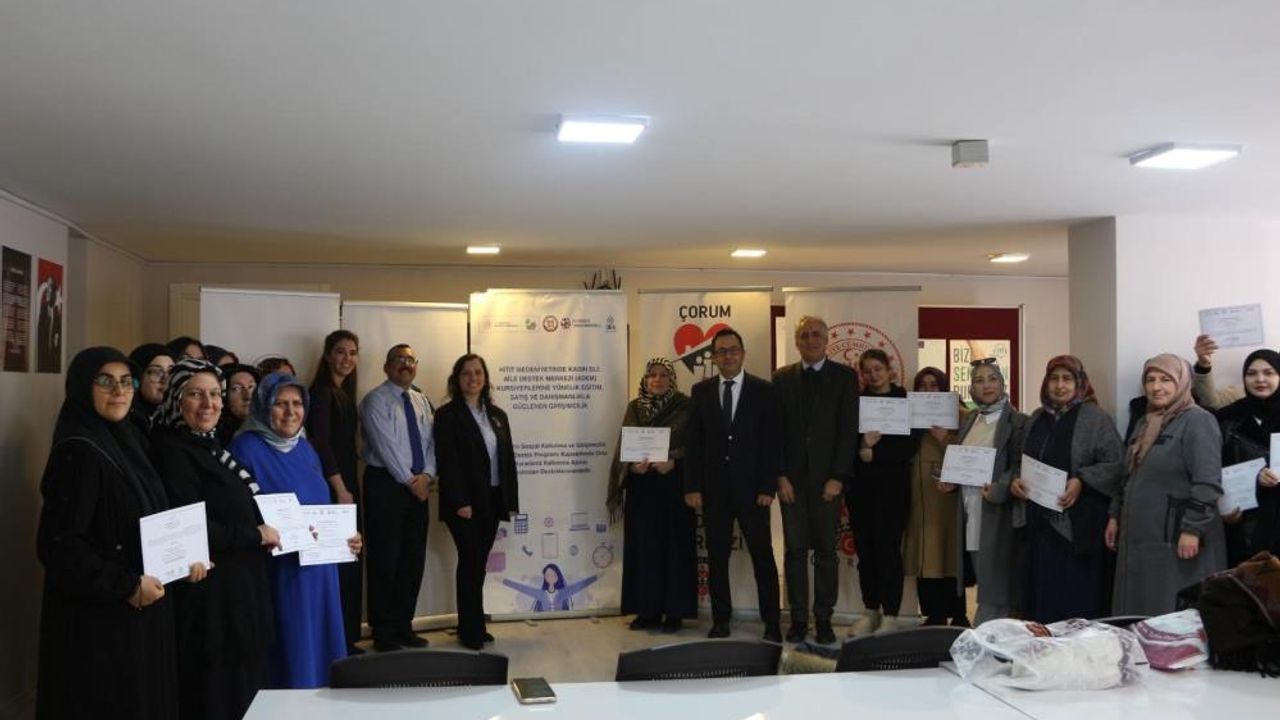 Çorum Sosyal Yardımlaşma ve Dayanışma Vakfının yararlanıcısı olduğu proje kapsamında, Hitit Teknoloji ve Transfer Ofisi tarafından düzenlenen eğitim ve danışmanlık programlarıyla kadınlara hem teorik hem de uygulamalı kazanımlar sunuldu.
