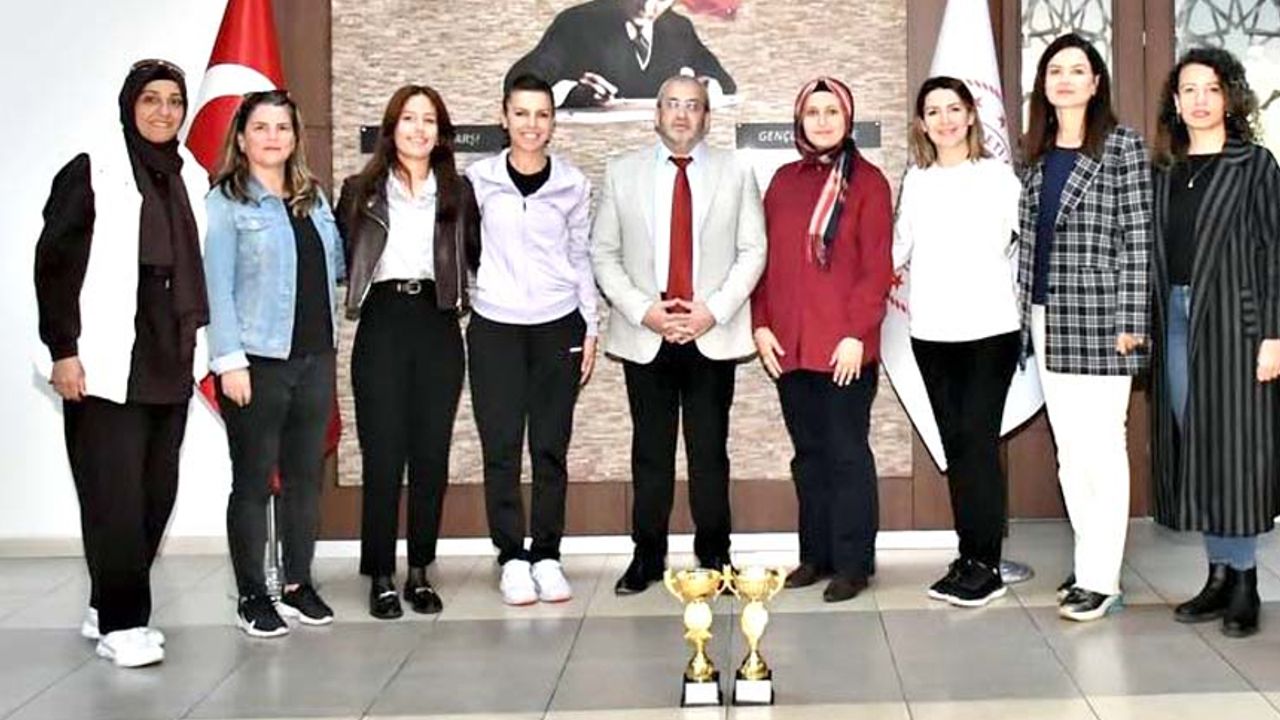 Kamu Spor Oyunları Voleybol turnuvasında şampiyon olan Milli Eğitim ve Gençlikspor kadın voleybol takımı Milli Eğitim Müdürü Cemil Çağlar’ı ziyaret etti.