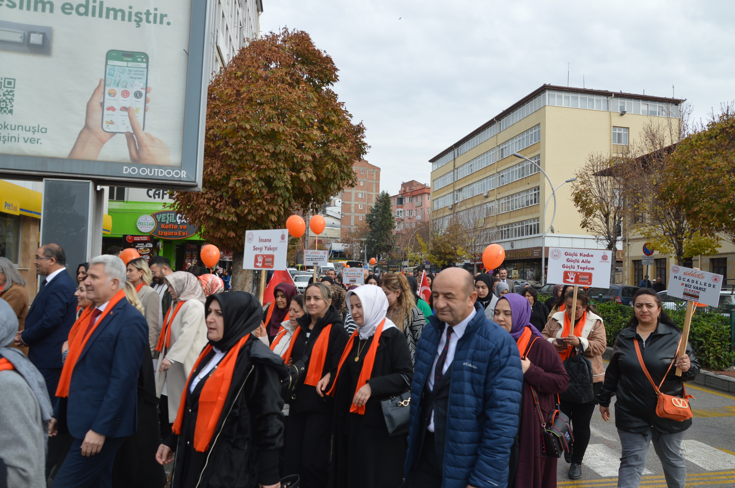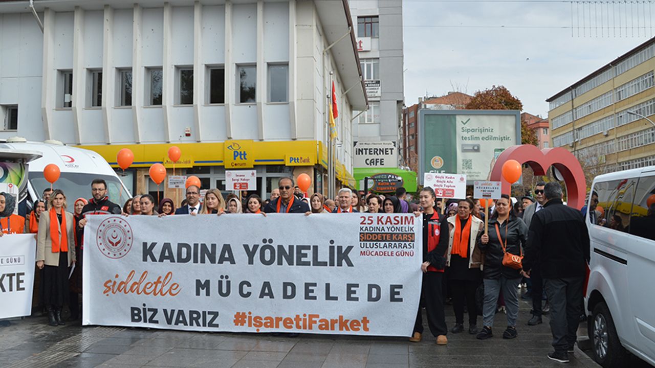 Aile ve Sosyal Hizmetler İl Müdürlüğünce gerçekleştirilen etkinlikte, kadına yönelik şiddetin önlenmesine yönelik ilgili kurumların desteği ile toplumun tüm kesimlerinin duyarlı olması için yürüyüş yapıldı.