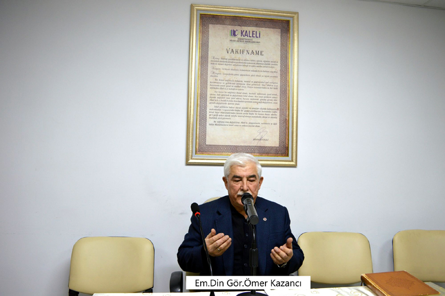 Kuranı Kerim Tilavetinin ardından Kaleli Vakfı Yönetim Kurulu Başkan Yardımcısı ve Vakıf Müdürü İsmail Tuncel açılış konuşmasını yaptı.