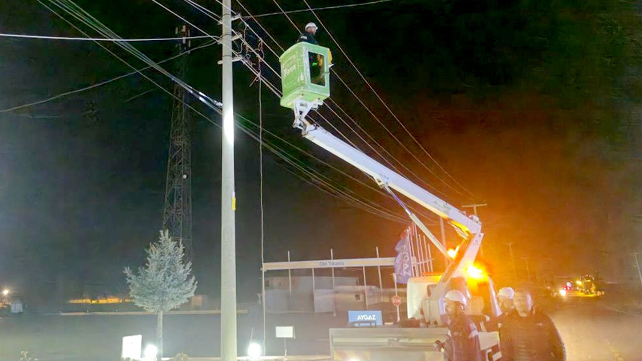 İhbar üzerine olay yerine polis ile telefon ve elektrik dağıtım şirketlerine bağlı ekipler sevk edildi.