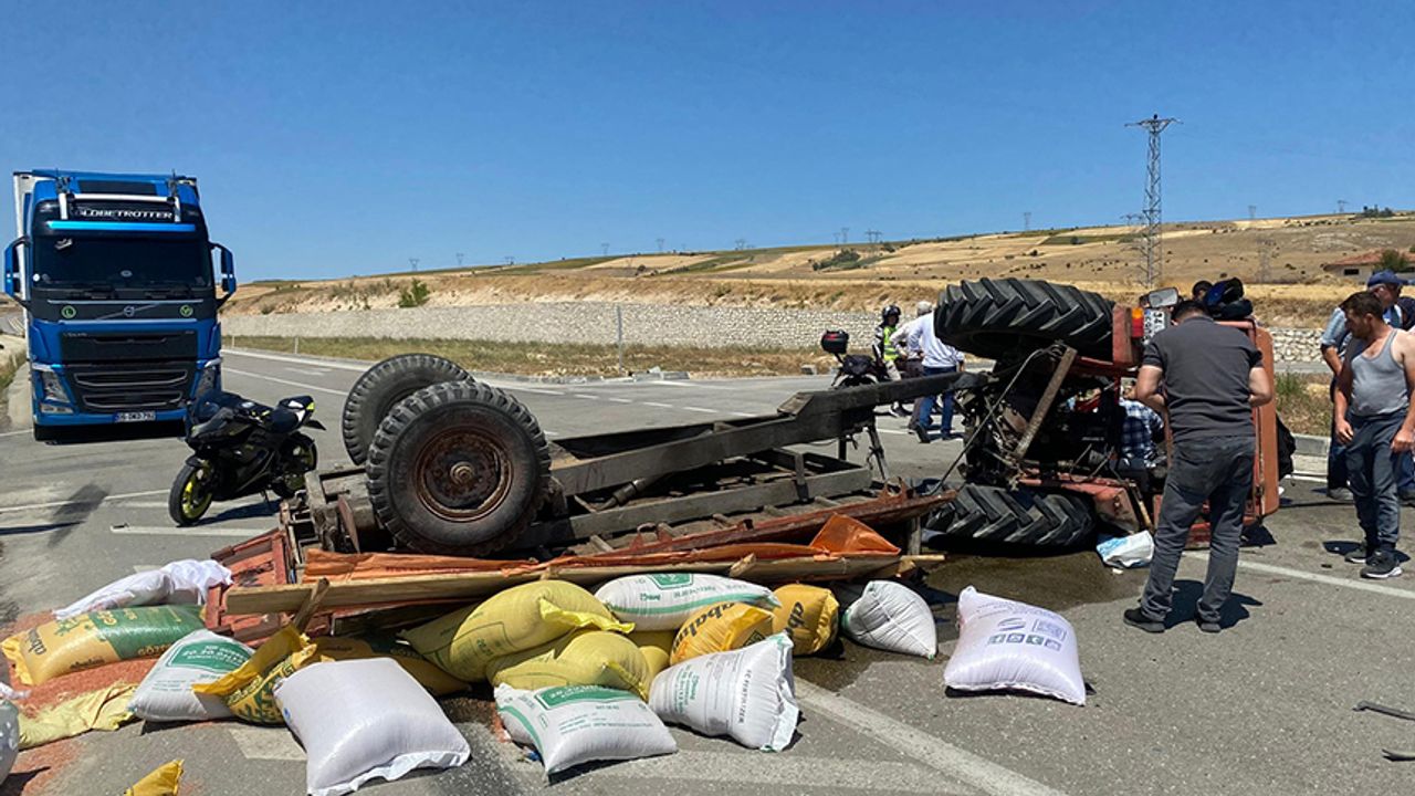 Çorum'da kamyonla traktörün çarpıştığı kazada traktör sürücüsü yaralandı.