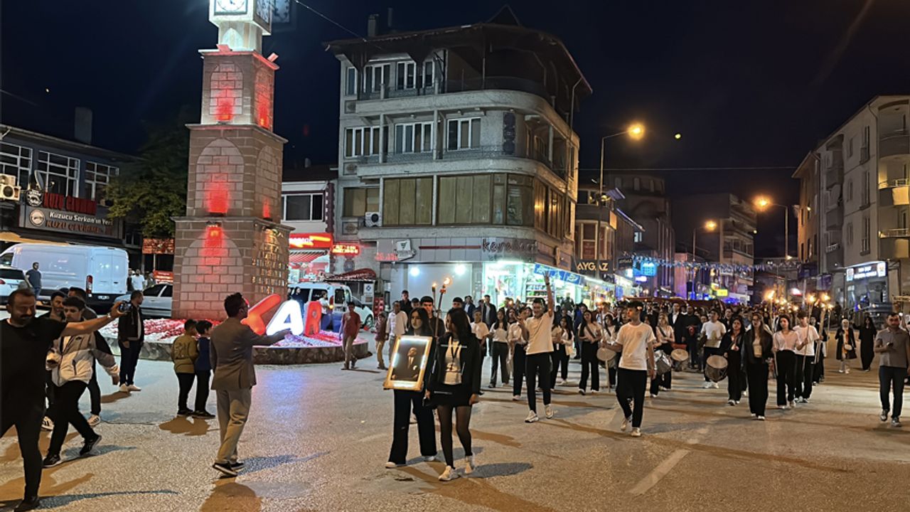 Kaymakamlık tarafından gerçekleştirilen etkinlikte, Fen Lisesi önünde toplanan vatandaşlar, ellerinde taşıdıkları Türk bayrakları ve meşalelerle belediye binası önüne kadar yürüdü.