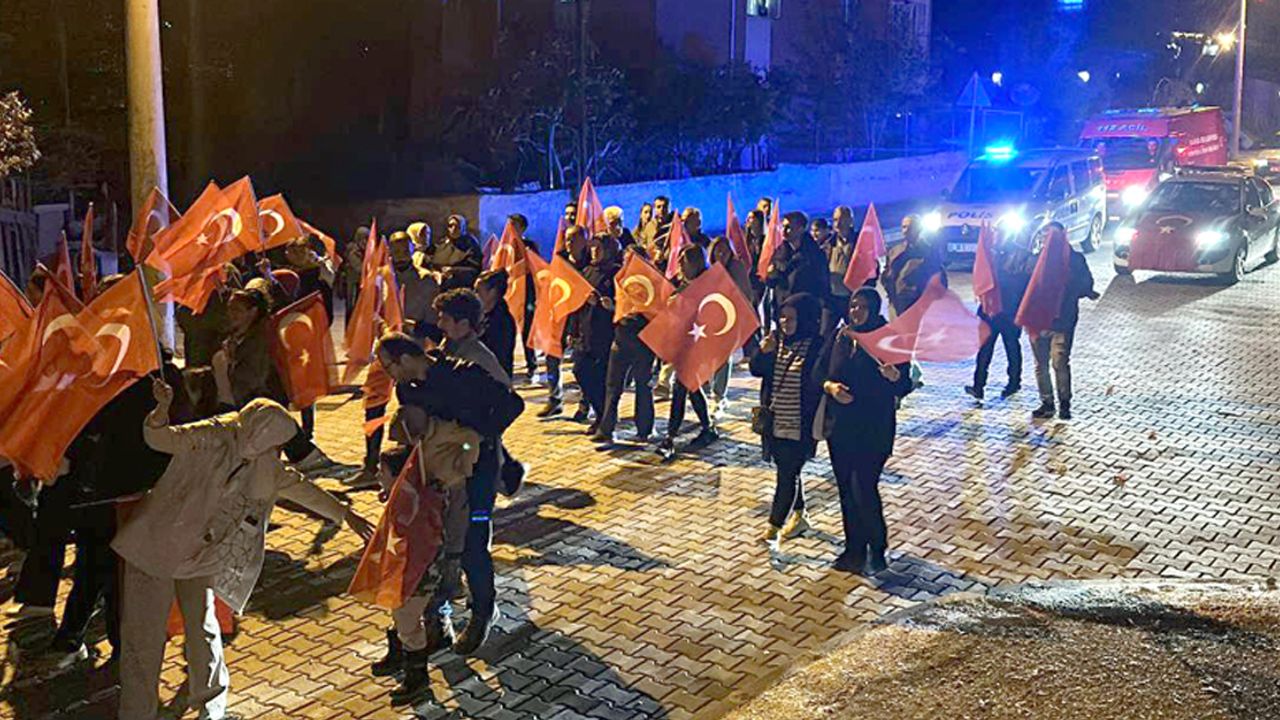 Yürüyüşe katılan vatandaşlar ellerinde meşaleler ve bayraklarla marşlar söylerken, evlerinin balkonlarından izleyen vatandaşlar ise korteji alkışlayarak destek verdi.
