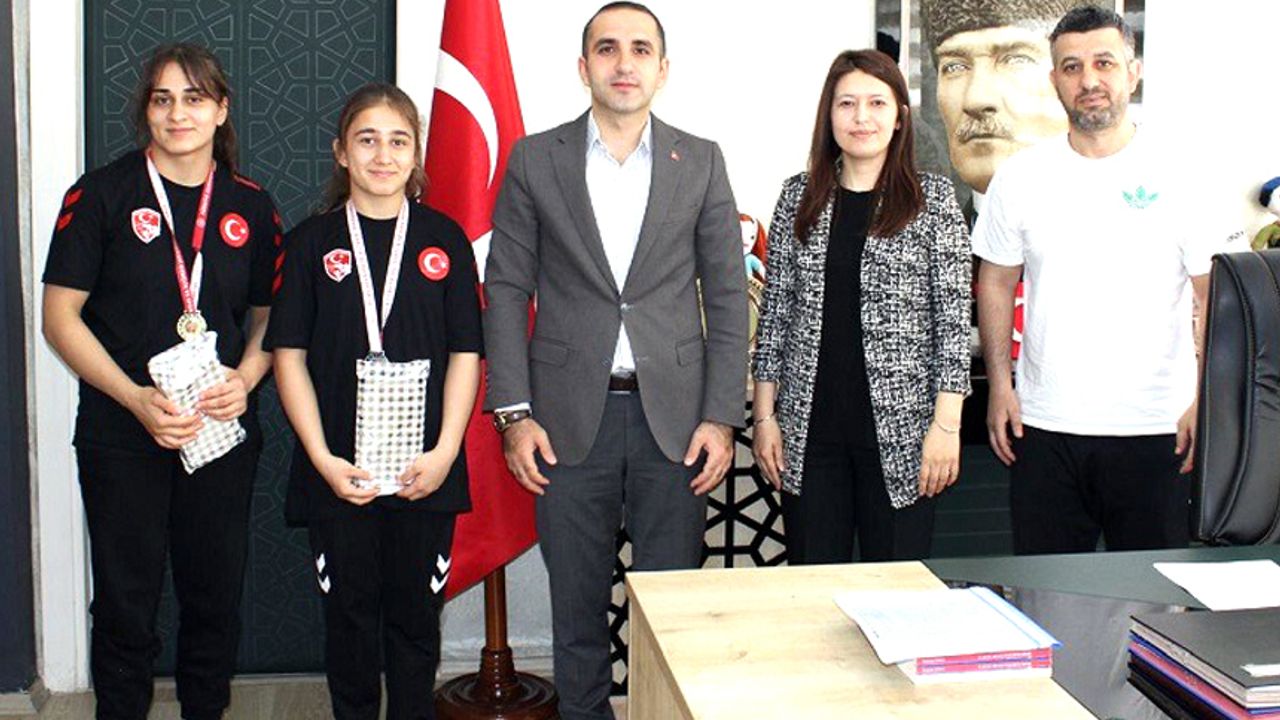 Rize’de düzenlenen Genç Kadınlar Güreş Okul Sporları Türkiye Finalleri'nde dereceye giren İskilip Sultan Hatun Mesleki ve Teknik Anadolu Lisesi öğrencileri ve İskilip Belediye Spor Kulübü sporcuları Esma Özmez ve Özdenur Özmez, antrenörleri Adem Uysal eşliğinde İskilip Kaymakamı Ramazan Polat’ı makamında ziyaret etti.