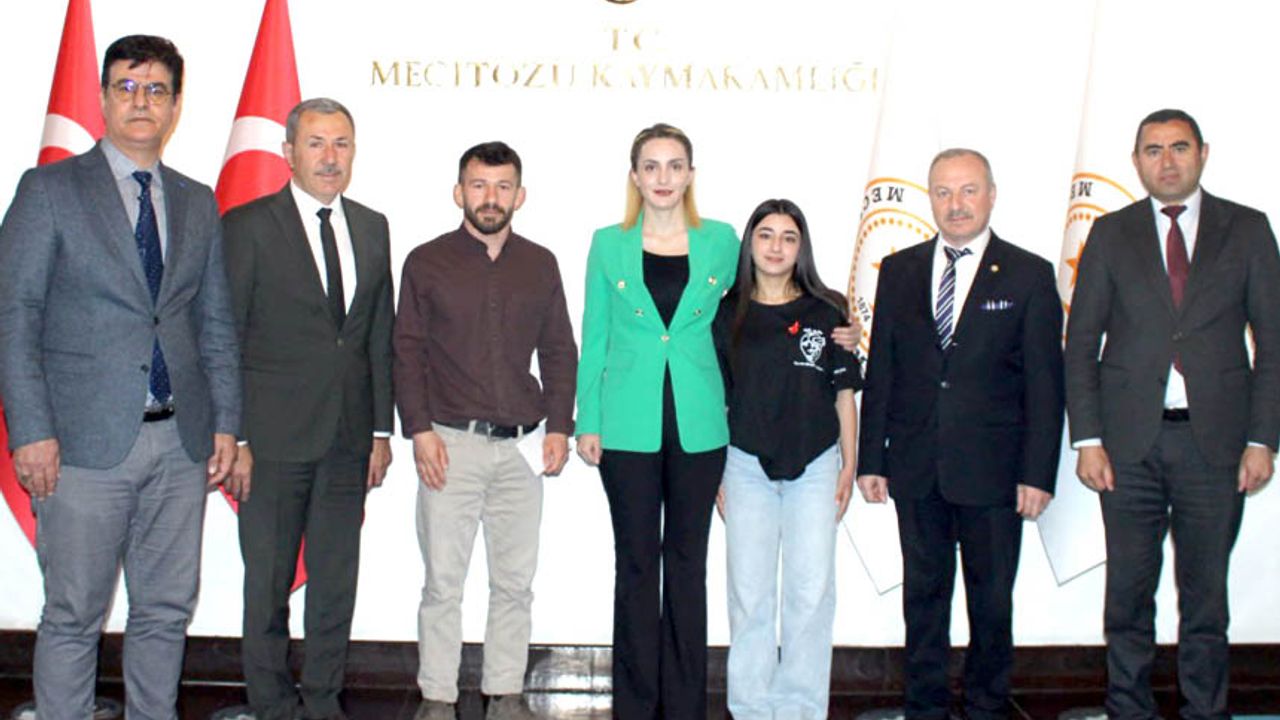 Mecitözü Kaymakamı Fatma Gül Nayman, Okul Sporları Genç Kızlar Türkiye Güreş Şampiyonasında 43 kiloda Türkiye şampiyonu olan Eda Nur Tümer'i ödüllendirdi.