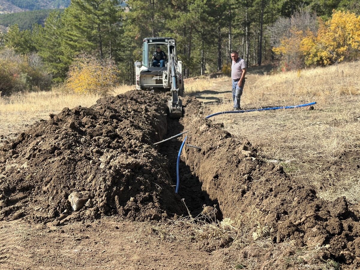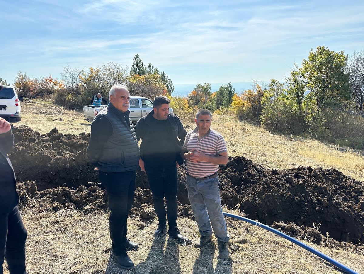 İskilip Belediye Başkanı İsmail Çizikci, Ulaştepe Mahallesi'nde muhtarla birlikte mahalledeki kaynak sularını çeşmelere akıtmak için çalışmalara başladıklarını duyurdu.
