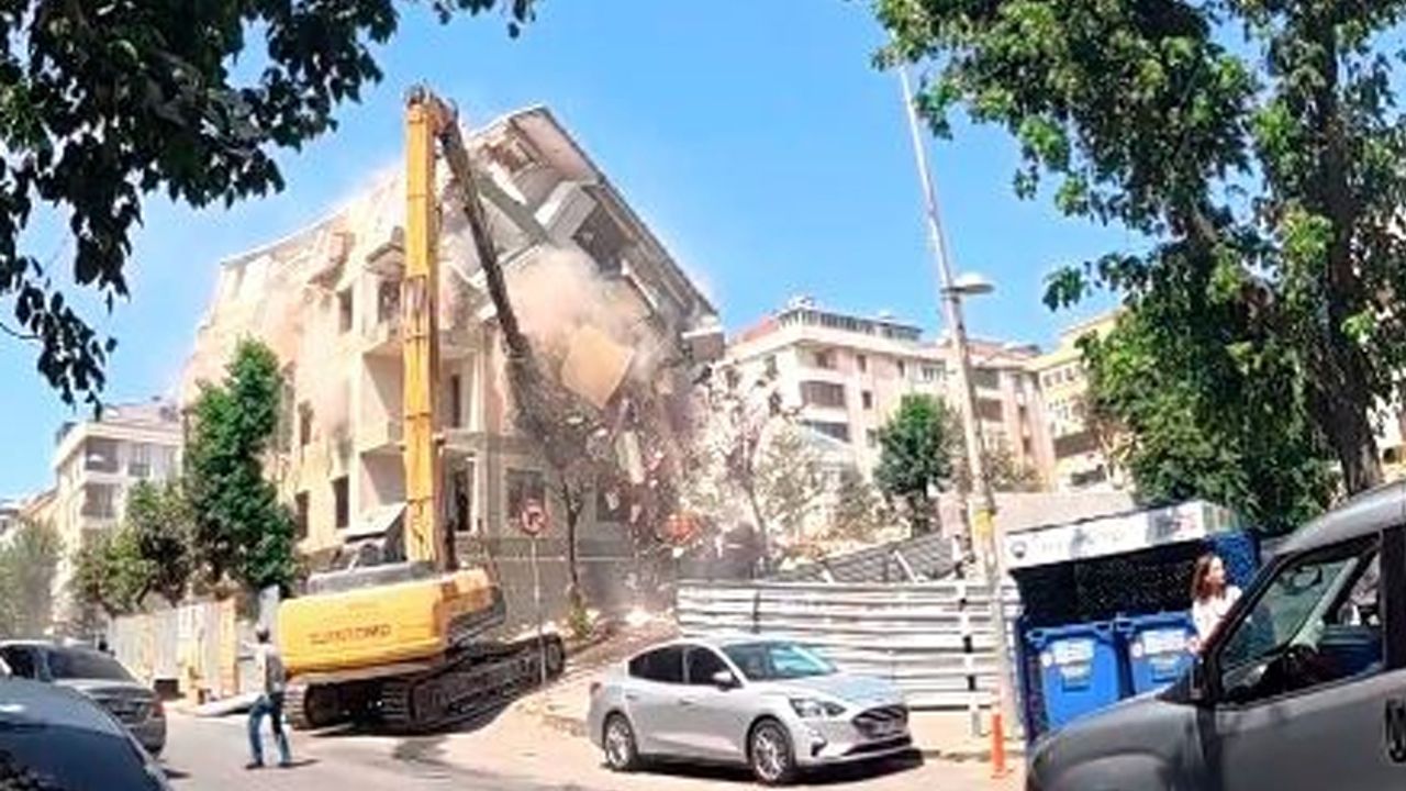 Çökme sonrası etrafı toz bulutu kaplarken, yıkım esnasında iş makinesi operatörü enkaz altında kalmaktan kıl payı kurtuldu. Korku dolu anların yaşandığı o anlar ise cep telefonu kamerasına yansıdı.