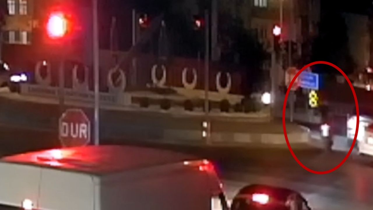 Kaza anı ise güvenlik kamerasına yansıdı. Görüntülerde motosiklet sürücüsünün kırmızı ışık yanarken kavşaktan geçtiği ve yola çıktığı anda ciple çarpıştığı görülüyor. Çarpmanın etkisi ile motosiklet sürücüsü metrelerce savruluyor.