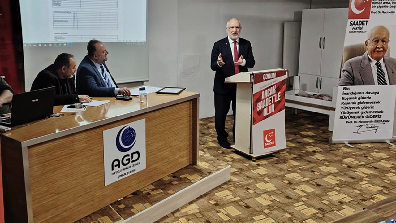 Toplantının açış konuşmasını yapan Saadet Partisi İl Başkanı Şuayb Sarı, 56 yıllık Millî Görüş Hareketi’nin yeniden iktidara taşınması için Çorum teşkilatı olarak kenetlendiklerini belirterek, “Merhum liderimiz Necmettin Erbakan’ın ortaya koyduğu ‘Yaşanabilir Bir Türkiye’, ‘Yeniden Büyük Türkiye’ ve ‘Yeni Bir Dünya” hedefleri doğrultusunda, tüm insanlığın kurtuluşu için var gücümüzle çalışıyoruz. Bu çalışmalarımızda, samimiyetle ve fedakârca emek sarf eden teşkilatımızın tüm fertlerine gönülden teşekkür ediyorum. Önümüzdeki süreçte, Çorum’un en ücra köşesindeki hemşehrilerimiz de dâhil olmak üzere bütün vatandaşlarımızla daha sıkı kucaklaşmaya devam edeceğiz.” diye konuştu.