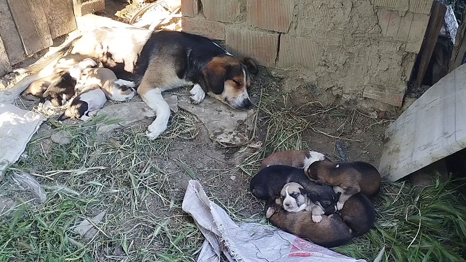 Çorum’un Osmancık ilçesinde yaşayan 2 kardeş, sokakta doğum yapan ve 13 yavrusu bulunan köpeği sahiplendi.