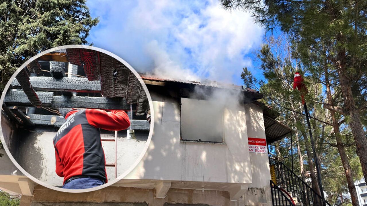 Yangın nedeniyle kurs binasında hasar oluştu.