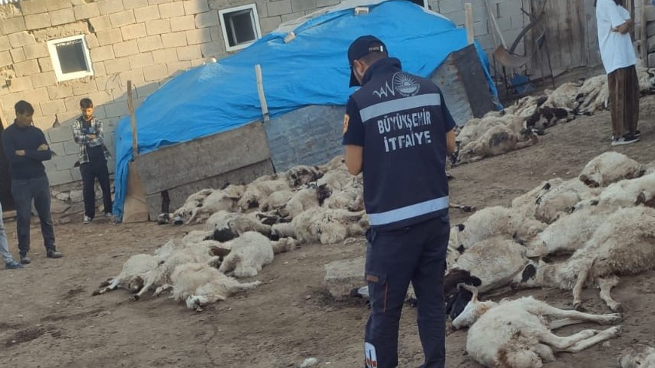 Gece saatlerinde ahıra giren kurtlar, sürüye saldırdı. Sabah ahıra giren sürü sahipleri, onlarca koyunun telef olduğunu görünce yetkililere haber verildi.
