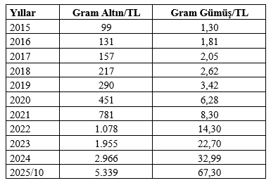 Altın ve gümüş fiyatları önümüzdeki dönemde nasıl seyredeceği konusunda farklı tahminler var. Dünyada belirsizlik devam ettiği sürece altın ve gümüşün prim yapmaya devam edeceğini öne sürenlerin yanında bu iki değerli metalde balon oluştuğu ve bir düzeltmenin mutlaka geleceğini öne sürenler de var. Aslına bakarsanız zaman zaman düzeltmeler zaten oluyor ama bunlar geçici düzeltme biçiminde kalıyor. Altın ve gümüş değerleri düştüğü yerden yeniden yükselişe geçerek bu düşüşleri kısa sürede telafi ediyor. Örneğin bu hafta Gazze sorunu barışçıl yollarla çözülmeye dönüşünce bu ikilinin fiyatları düştü. Ardından Trump’ın Çin’i yeniden yüzde 100 gümrük vergisi uygulamasıyla tehdit etmesi sonucu altın ve gümüşteki düşüşler hafta sonuna doğru yeniden yükselişe dönerek kayıpları telafi etmeye başladı. Trump işbaşındaysa riskler bazen düşse de genel olarak yükselecek gibi görünüyor.