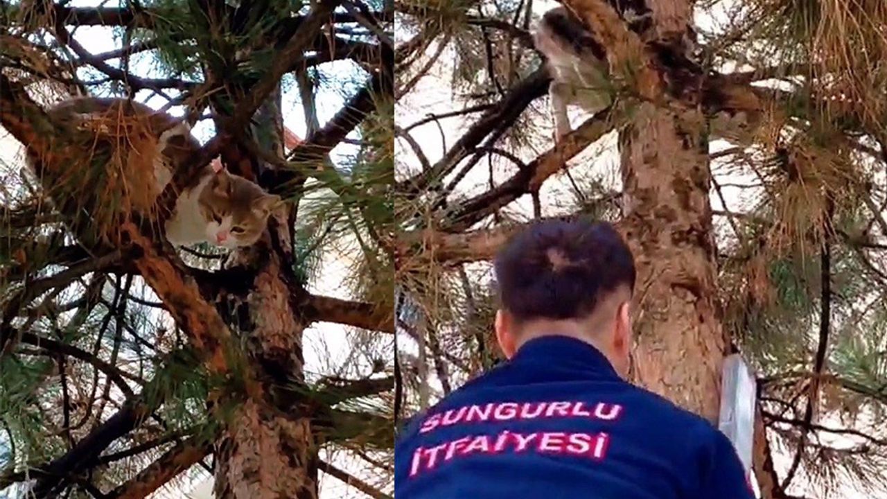 Mahsur kalan kedi ekipler tarafından kurtarıldı