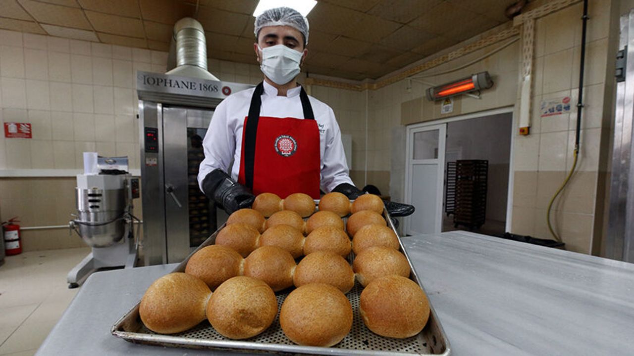 Fırında 10 öğrencinin çalışıp eğitim gördüğünü anlatan Sökmen, "10 öğrencimizle günlük 6 bin tam buğday ekmeği üretiyoruz. Günlük 5 bin kişilik yemek. Kafeteryamız için günlük 150 kilograma yakın kuru pasta üretilmektedir. Aylık 2 bin 500 yaş pasta üretilmektedir. Bunların tamamı okulumuzdaki öğrenci ve öğretmenler tarafından yapılmaktadır." diye konuştu.