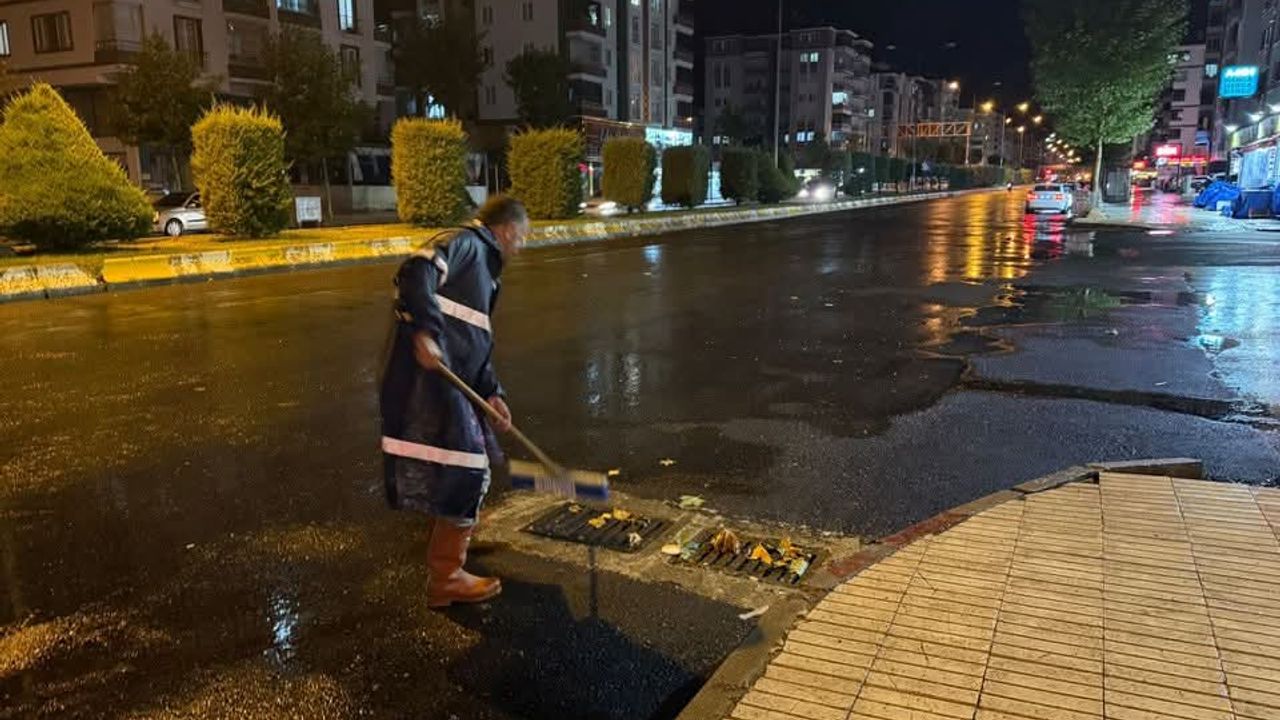 Belediye ekipleri, yağış boyunca mazgal ve yağmur suyu kanallarında temizlik çalışmalarını devam ettirdi.