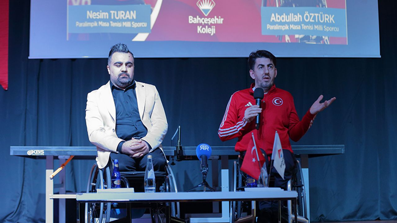 Milli para masa tenisçi Abdullah Öztürk ile eski milli para masa tenisçi Nesim Turan, Çorum'da öğrencilerle bir araya geldi.