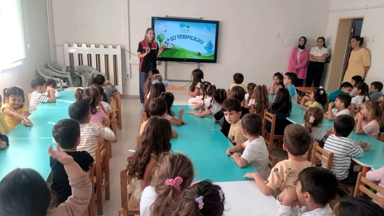 Eğitimde miniklere, suyun hayatımızdaki önemi, su tasarrufu ve bilinçli su kullanımı hakkında bilgiler verildi.