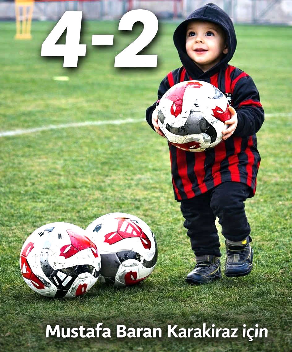 Çorumlu SMA hastası Mustafa Baran Karakiraz’ın tedavisi için başlatılan kampanyaya destek sağlamak için hazınlanan pankartlarla iki takım futbolcuları ve maçın hakemi seronimiye çıktılar.