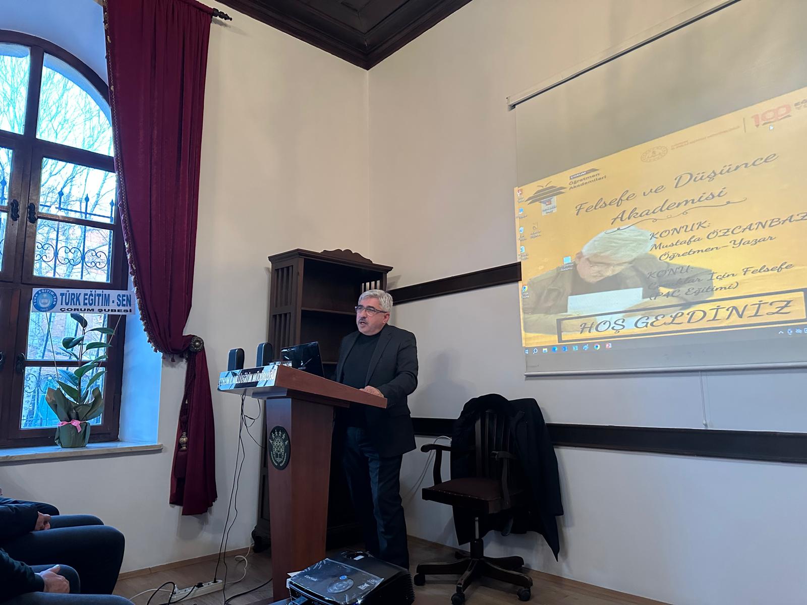 Milli Eğitim Müdürlüğü tarafından Hasan Paşa Yazma Eserler Kütüphanesi'nde düzenlenen programa konuşmacı olarak katılan Mustafa Özcanbaz, yaptığı sunumda Çocuklar İçin Felsefe (P4C Eğitimi) başlığı altında, erken yaşlarda çocukların sorgulama, düşünme ve anlam kurma becerilerinin nasıl geliştirilebileceği üzerine önemli bilgiler aktardı.