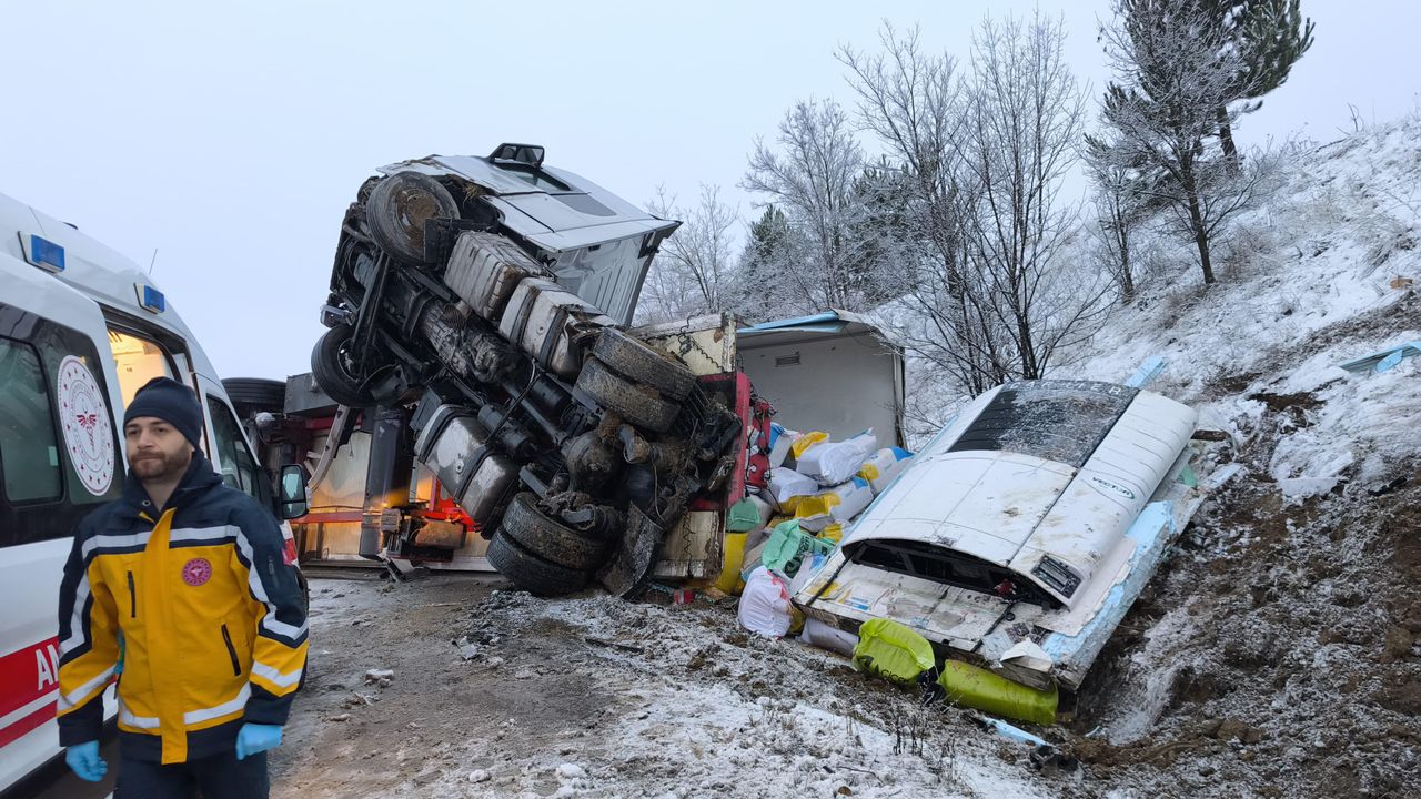 Osman D. idaresindeki 55 ADL 625 dorse plakalı tır, Çorum-Ankara kara yolu Sungurlu ilçesi Narlık mevkisinde devrildi.