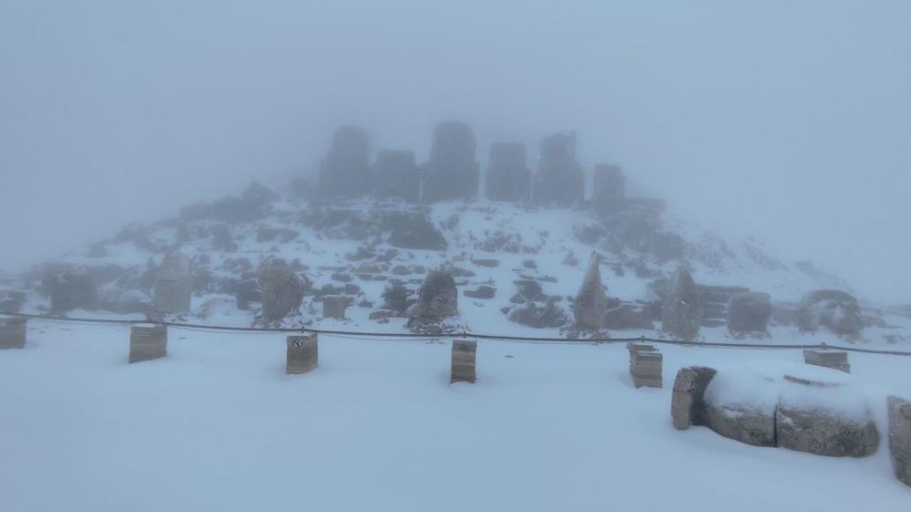 UNESCO Dünya Kültür Mirası Listesi’nde yer alan 2206 metre yükseklikteki Nemrut Dağı’na mevsimin ilk karı yağdı.