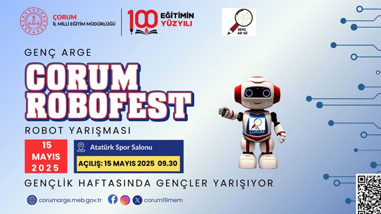 Çorum İl Milli Eğitim Müdürlüğü tarafından organize edilen 1. Genç Ar-Ge Çorum Robofest 15 Mayıs Perşembe günü yapılacak.
