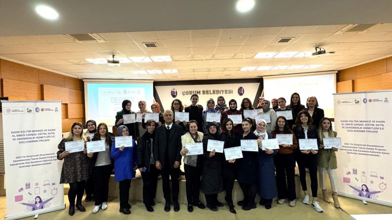 Çorum Belediyesi'nin başvuru sahibi olduğu, kadınların ekonomik hayata katılımını desteklemek amacıyla düzenlenen proje kapsamında, her biri 2 gün süren 6 eğitim oturumu başarıyla gerçekleştirildi. Proje çerçevesinde, Dr. Yasemin Demir tarafından "Finansal Okuryazarlık", Dr. Leyla Bezgin Ediş tarafından "Geleneksel Pazarlama ve İnternetten Satış Teknikleri", Prof. Dr. Ufuk Gergerlioğlu tarafından "İş Planı Hazırlama ve İş Yeri Açma Süreçleri" olmak üzere üç ana başlıkta eğitimler düzenlendi. Eğitimlere toplamda 51 kadın katıldı. Şubat ayında gerçekleştirilen eğitimler, Çorum Belediyesi'nin sosyal medya hesapları üzerinden yapılan anketle başvuran, el emeği üretimi yapan veya yapmayı planlayan ev hanımı ile gerçekleştirildi.
