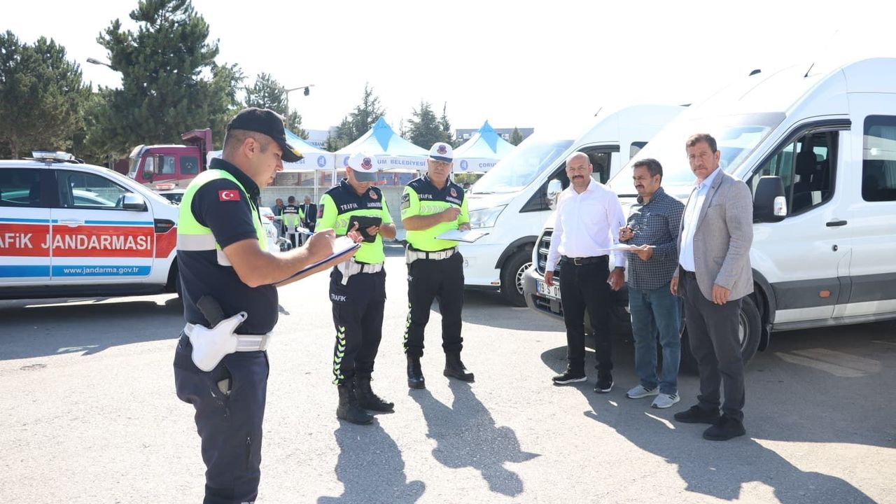 Çorum'da okul servis araçlarının denetlendiği bildirildi.