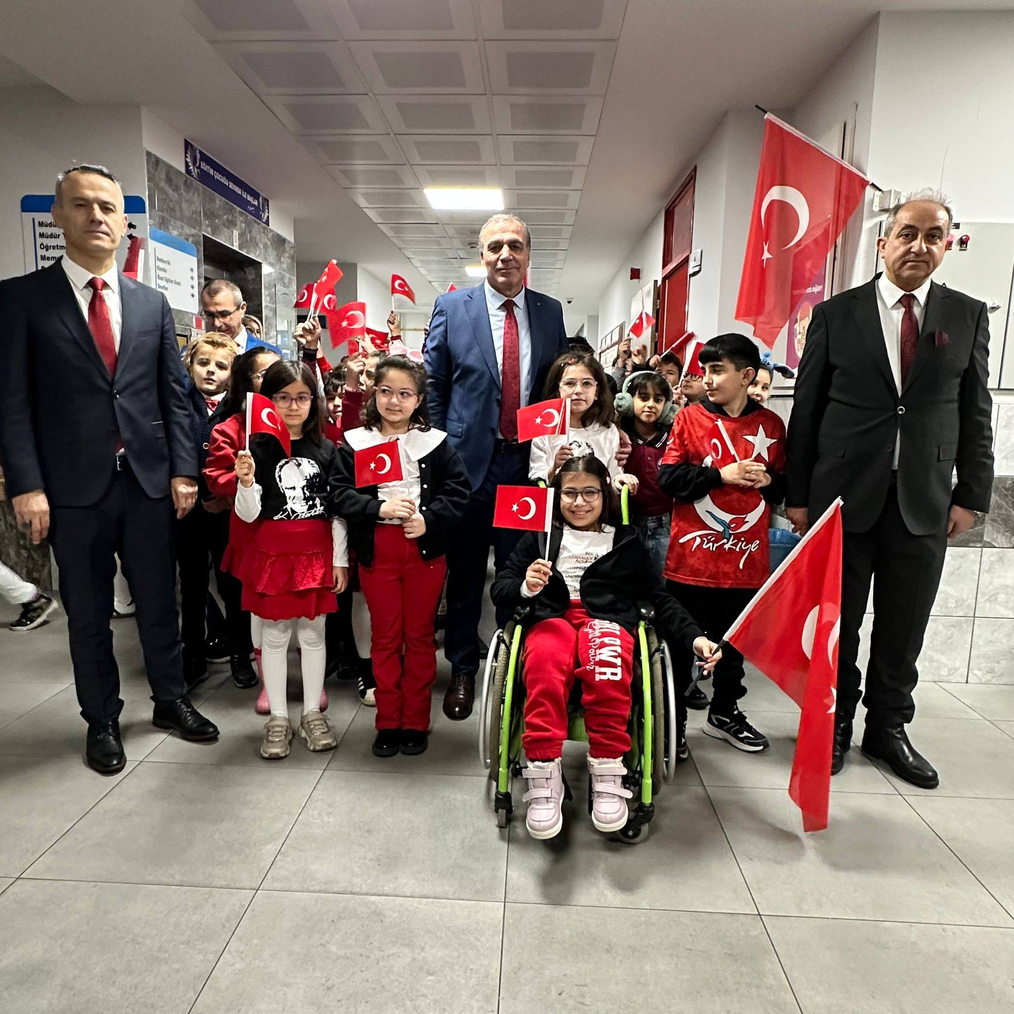Konuşmasında öğretmen ve velilere de hitap eden Çağlar, sınıflarda verilen her bilginin ve kazandırılan her değerin çocukların bayrakla kurduğu bağı güçlendirdiğini, evde başlayan sevginin okulda bilinçle buluşmasıyla vatanını ve milletini seven nesillerin yetişeceğini söyledi.
