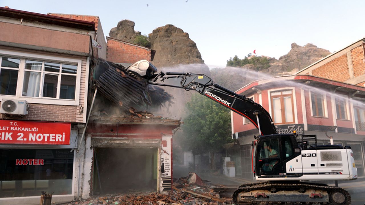 Çorum'un Osmancık ilçesinde, İbriktar Hazretleri Türbesinin çevresinde kamulaştırılan binalar yıkılmaya başlandı.