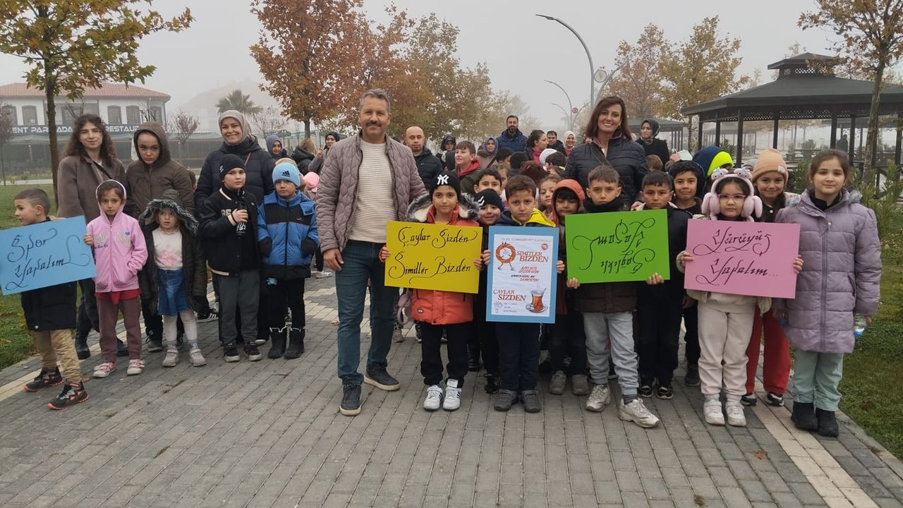 Çorum'un Osmancık ilçesinde 75. Yıl Cumhuriyet İlkokulunca düzenlenen "Simitler Bizden, Çaylar Sizden" etkinliğinde öğrenci ve veliler doğa yürüyüşü yaptı.