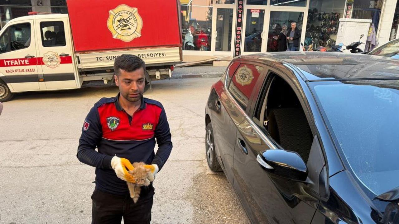 Çorum’un Sungurlu ilçesinde bir aracın motor kısmına giren yavru kedi, sürücünün fark etmesinin ardından itfaiye ekipleri tarafından kurtarıldı.