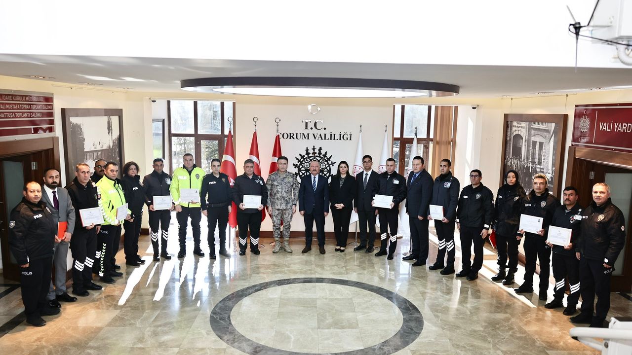 Çorum Valisi Ali Çalgan, özel güvenlik görevlileri ile genel kolluk arasındaki iletişimi güçlendiren KAAN (Genel Kolluk-Özel Güvenlik İş Birliği ve Entegrasyonu) uygulamasını başarıyla kullanan kolluk ve güvenlik personeline başarı ve teşekkür belgeleri verdi.