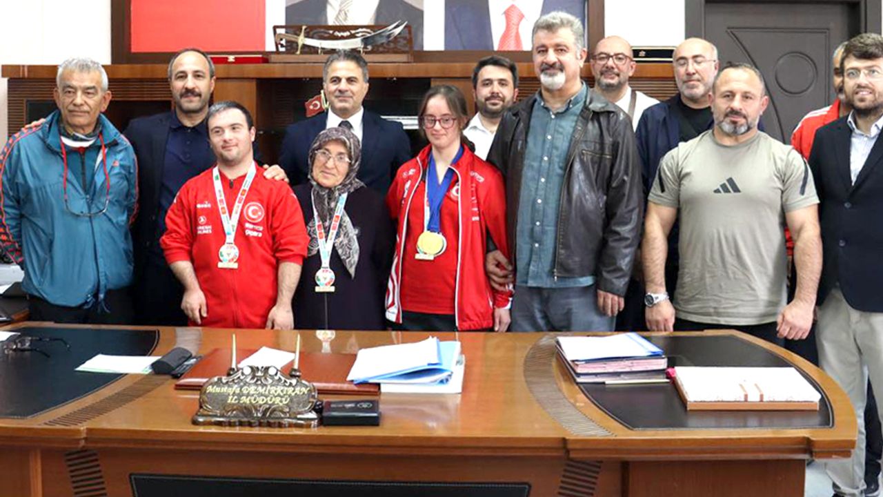 Özel Sporcular Federasyonu As Başkanı Ensar Kurt beraberinde Down Sendromlular Masa Tenisi Şampiyonu Özel Sporcumuz Merve Peker, Down Sendromlular Atletizm Dünya dördüncüsü ve Türk Cumhuriyetleri Spor Oyunları Gülle Atma Şampiyonu Enes Borucu, ve aileleri ile birlikte Gençlik ve Spor İl Müdürü Mustafa Demirkıran’ı ziyaret etti.