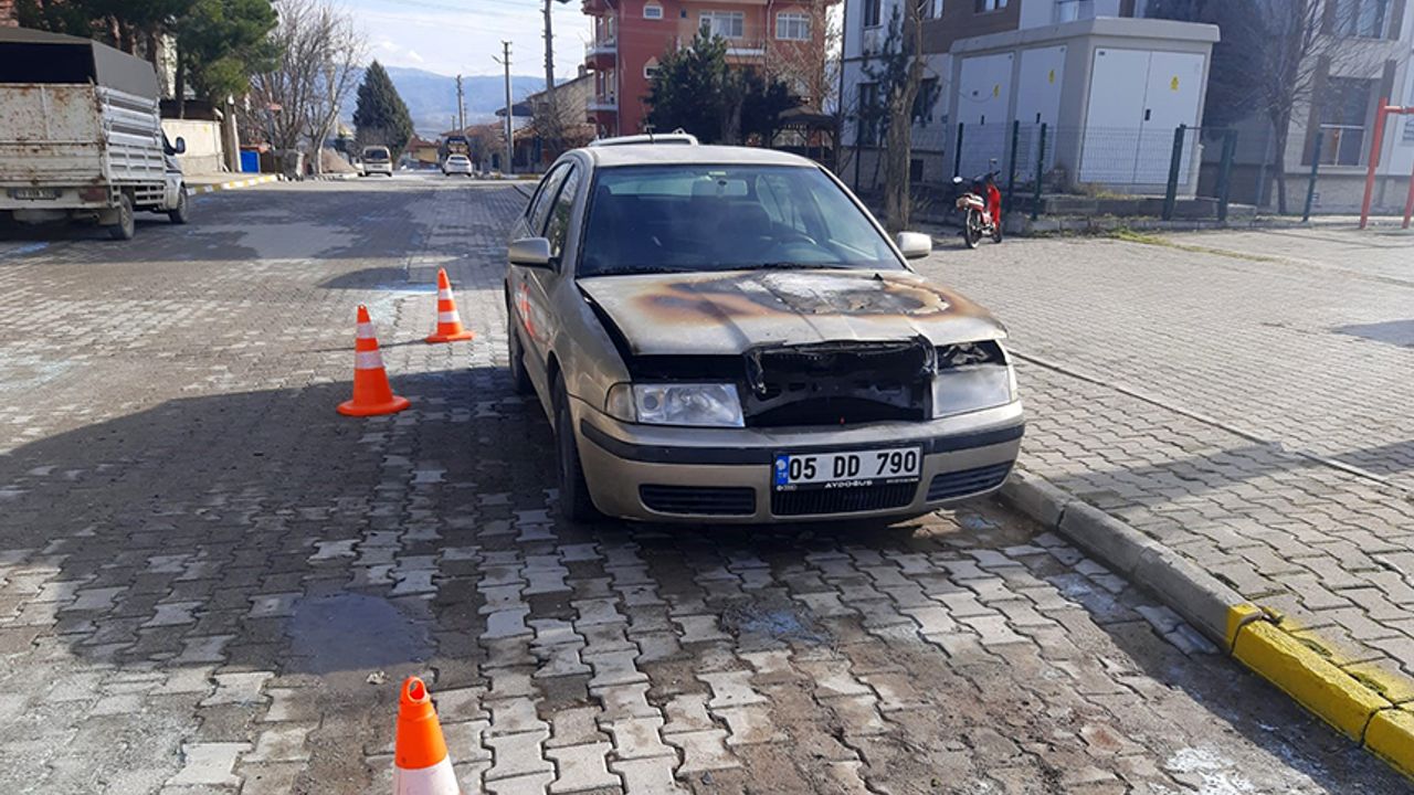 Dodurga Belediyesi itfaiye ekiplerince söndürülen yangın nedeniyle otomobilde hasar oluştu.