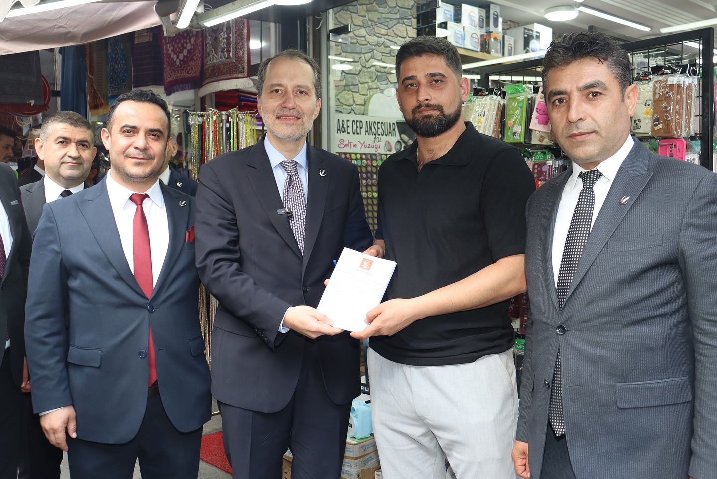 Esnaf ziyaretinde Erbakan’a YRP Kocaeli Milletvekili hemşehrimiz Mehmet Aşıla, YRP İl Başkanı Nuri Kuşcu, Merkez İlçe Başkanı Ferhat Yeğen ve partililer eşlik etti.