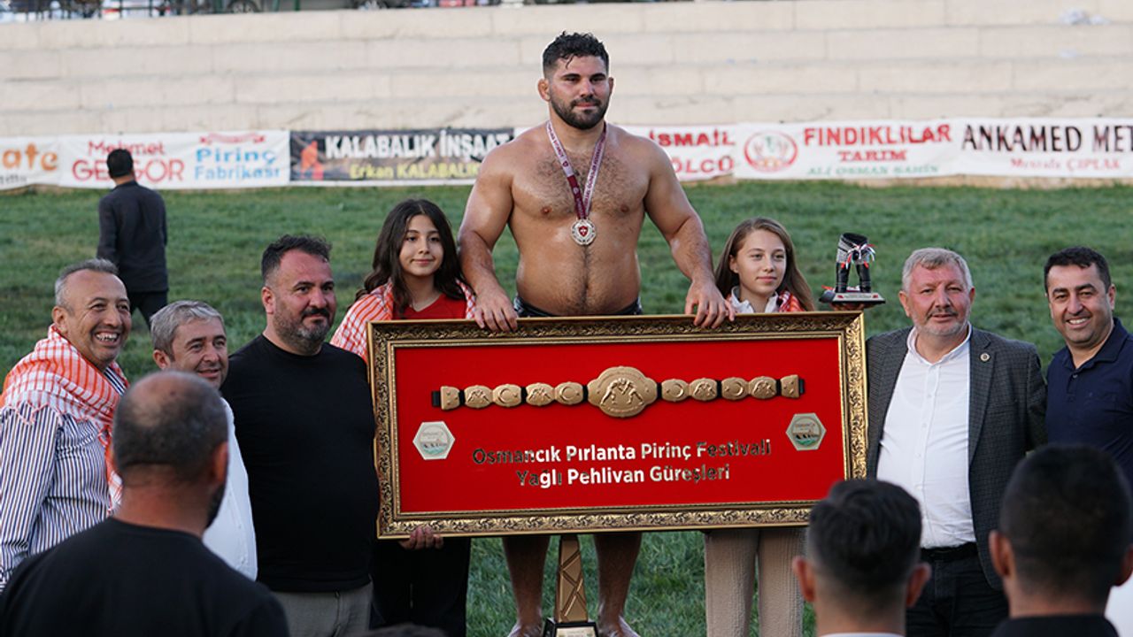 Çorum'un Osmancık ilçesinde Pırlanta Pirinç Kültür ve Sanat Festivali kapsamında düzenlenen Yağlı Pehlivan Güreşleri'nde Erkan Taş, başpehlivan oldu.