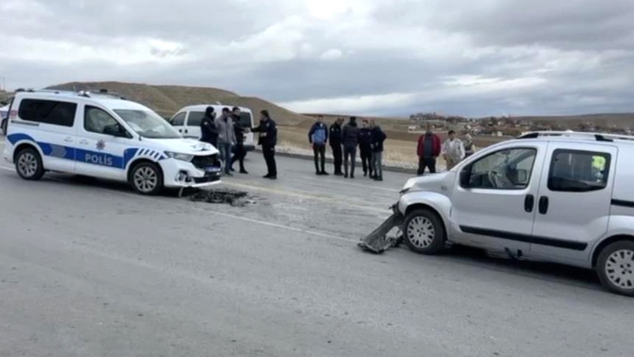 Çorum’da hafif ticari araç ile ekip aracının kafa kafaya çarpıştığı kazada bir polis memuru yaralandı.