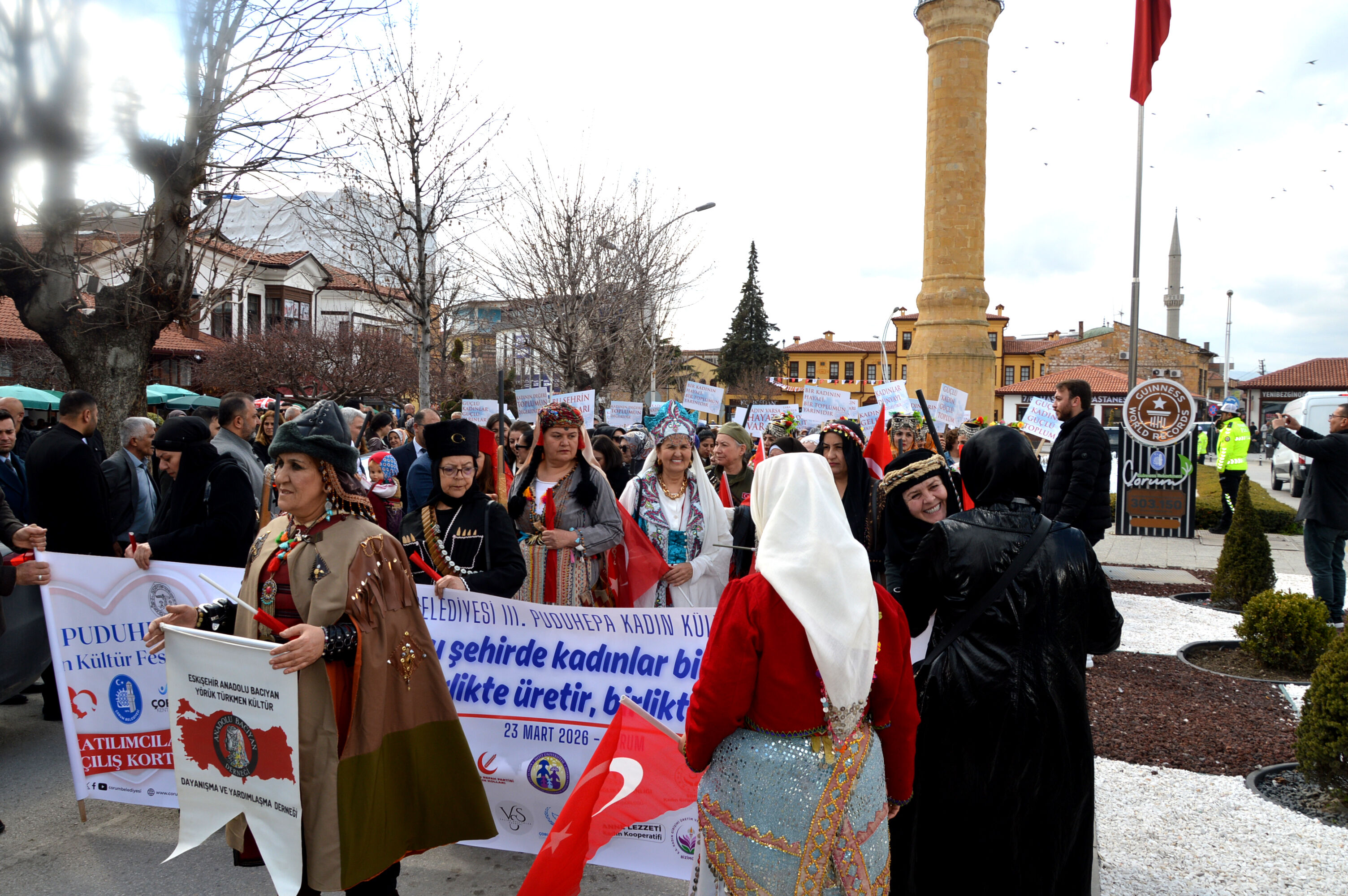 24-28 Mart 2026 tarihleri arasında çeşitli etkinliklerle kutlanacak Puduhepa Kadın Kültür Festivali, kortej yürüyüşü ile başladı.