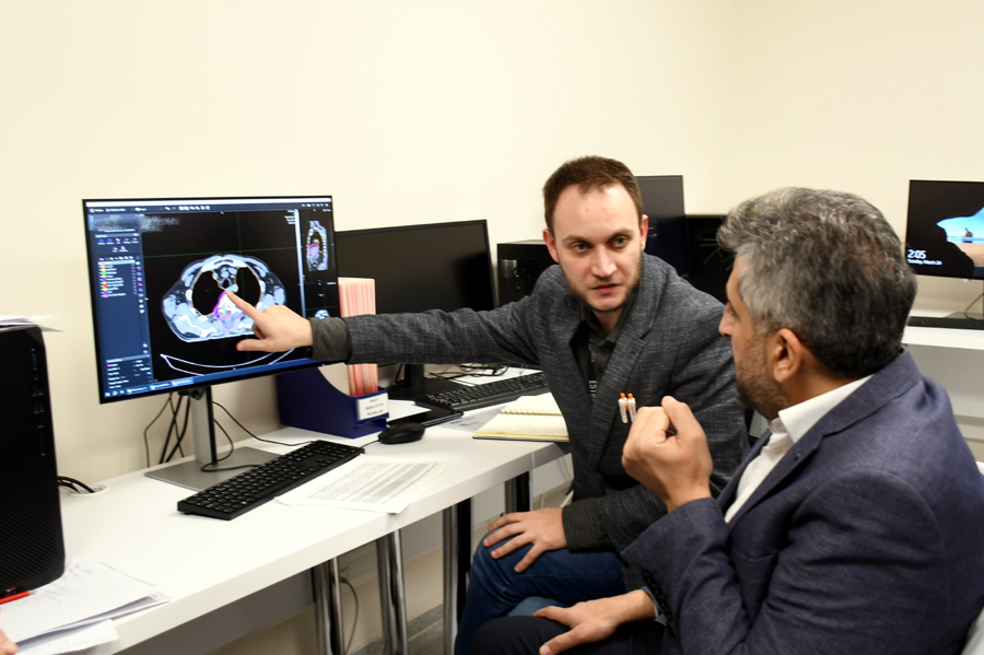 Hastane Başhekimi Doç. Dr. Muhammed Gömeç, Onkoloji Tanı ve Tedavi Merkezini ziyaret ederek yeni nesil Lineer Hızlandırıcı (LINAC) cihazında incelemede bulundu.